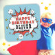 Superhero Comic Speech Bubble Boy Happy Birthday sticker. Add your name. Fun birthday sticker for boys.