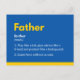 This superhero fathers day card in yellow and blue has a definition of the noun "Father" (1.Play like a kid, give advice like a friend and protect like a bodyguard. 2.Superhero without a cape). This happy father's day card is unique and so thoughtful. Perfect to show your love and your gratitude on father's day. Any father will love this best dad card. :) Lucky you ! You have four color choices for this fathers day card. Happy father's day !