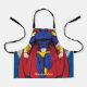 Great color and even though I ordered the kid size, it covers well enough to use during the holidays. I am not a big woman and prefer a shorter apron. I stand 5"6" and the length of the garment goes to mid-thigh. The tie straps fit well at my waist and even though there is no neck strap adjustment, the opening is plenty big enough. I am happy with the size and fit. I am sharing my apron with my 10 year old grandson, too! The color is vibrant and looks good, as shown on the website. The stitching looks strong and reinforced. Photographed is front side and back side of the apron, reinforced straps and coloring. My phone camera may not be the best at showing the details.