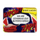 A cool, funny & trendy "Save the Date" wedding magnet. Bold & vivid colors, comic art and the message, "We Are Combining Our Superpowers" Add date and names.