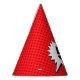 Two tone red dot party hat features speech bubble graphic and area for you to highlight your child's age - age is easily editable. Easy to assemble. This dot pattern coordinates with Superhero Party Collection in our shop as well as most Superhero themed birthday parties. Also available in our shop without the speech bubble graphic.
