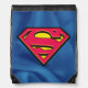 A beveled version of the classic Superman S-Shield logo atop a blue fabric texture.
