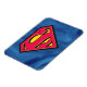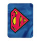 A beveled version of the classic Superman S-Shield logo atop a blue fabric texture.