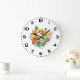 The clock face features a meticulously detailed illustration of a bustling supermarket basket, filled to the brim with all your favorite groceries. From fresh produce to pantry staples, every item is depicted with vivid colors and delightful precision, making it a feast for the eyes. The carefully chosen imagery captures the essence of a well-stocked shopping basket, bringing a touch of everyday joy into your home.