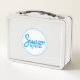 This is a standard metal lunchbox that appears to work just fine. We designed this box ourselves with an uploaded photo and custom text on the front and back. It looks absolutely beautiful except the front of the lunchbox is not centered like it shows in the photo. The print borders don't align with the inset flat part of the box where the preview photo online showed it perfectly centered in there. The back looks nice and centered though.
