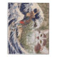 Unique collages of famous ukiyoe, or Japanese woodblock prints, the Great Wave off Kanagawa by Katsushika Hokusai (1760-1849) and Supernatural Cat by Kawanabe Kyosai (1831- 1889).