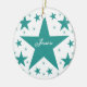 Superstar collection Round Ornament in teal featuring a cascade of fun stars. This cute and girly star design would make a great gift for any daughter, niece or other young female in your life. This fun star would make a lovely keepsake ornament by adding a name and/or personalized phrase.