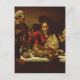 Jesus Christ resurrected and on the road to Emaus has a meal with friends and followers. Fine art from the 16th century the Italian artist Carvaggio.