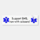 EMS bumper sticker, "Support EMS, run with scissors," show your sense of humor.