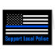Elegant and bold thin blue line American flag to show support for Local Police Officers, Department and Law Enforcement. Black blackground with bright blue and white patriotic theme. Show your community pride around your house, home, small business or neighborhood with a Support the Police themed gift for Father's day or any occasion for a new police Academy graduate or family member of a Police officer.