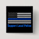 Elegant and bold thin blue line American flag to show support for Local Police Officers, Department and Law Enforcement. Black blackground with bright blue and white patriotic theme. Show your community pride around your house, home, small business or neighborhood with a Support the Police themed gift for Father's day or any occasion for a new police Academy graduate or family member of a Police officer.