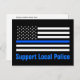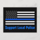 Elegant and bold thin blue line American flag to show support for Local Police Officers, Department and Law Enforcement. Black blackground with bright blue and white patriotic theme. Show your community pride around your house, home, small business or neighborhood with a Support the Police themed gift for Father's day or any occasion for a new police Academy graduate or family member of a Police officer.