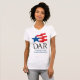 The material is a great quality that is hard to find with most tee shirts. Fabric was not see-through or thin at all, but was also very soft and comfortable. The shirt description states that it runs a little small, so I sized up one size for a perfect fit! I would definitely buy this type of tee shirt again because I love the fit and high quality fabric that I cannot find anywhere else. The printing was perfect and just as pictured. Loved the cute quote and really enjoy the tee in both the quality and design. I love quirky typography designs and funny quotes and I am extremely pleased with the overall quality and value I get at Zazzle!