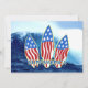 An American flag and triple surfboards combine to make this patriotic graphic that says "Surf America". Customize this card for your next luau, BBQ, party or with any greeting.