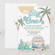 Celebrate your little ones big milestone with this colorful surf and beach themed 1st birthday invitation. Featuring palm trees, ocean waves, a retro van with a peace sign, and playful surfboard accents, this design captures a fun, laid-back vibe perfect for a tropical party. Ideal for kids birthdays, this unique invitation blends retro charm with modern style, making it a standout choice for beach lovers. Personalize easily with your party details and set the tone for an unforgettable celebration.