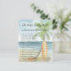 Baby on Board! Baby shower invitation - perfect for a summer baby shower. Beach theme. Watercolor design has a ocean and beach scene with surfboard, palm tree and summer hat.