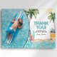 Extend heartfelt gratitude with our surf-themed thank you card! Ride the tide of appreciation as you express thanks to your guests for making your little one's first birthday celebration a memorable one. With its beachy vibes and sunny disposition, this card echoes the joy and warmth of your beach party. Send a wave of thanks and surf on the good vibes – order now to spread the love and gratitude!