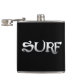 Surf flasks are for whiskey, tequila, water, other liquids, surfers, and surfing fans. Surf is Steamy Raimon original calligraphy art.