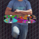 Surfboard skateboard, colorful, red blue green, turquoise, Virginia Vivier, Witches Hammer.