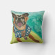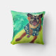 Watercolor of Chihuahua in Hawaiian shirt surfing on tennis ball themed surfboard