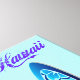 Surf Hawaii. Cute illustration with 3 groovy looking surfboards with a sixties flower design on the boards. Pink rose flower and a nice grunge- looking script font.