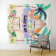 Add some surf and sea ambiance to your birthday party with this beach theme tapestry! Featuring a tropical paradise with sun, ocean, palm trees and a surfboard adorned with a "Surf's Up" banner, string lights, hibiscus and palm leaves. The summery colors are gender neutral and the text can be personalized to suit your celebration - whether it's a 10th, 25th or 99th birthday party or any age in between. You could also customize the event type if your celebration is something other than a birthday. This tapestry can be used both as a festive decoration and as a fun photo backdrop. Art by KL Stock