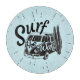 Surfer bus with two surfboards and surf the wave text on the car | © and ® Bigstock® - All Rights Reserved.