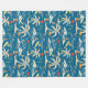 Surf tropical island themed graphics on an Aegean blue background, seamless repeat pattern