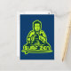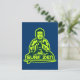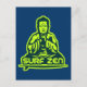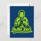 Be at one with your board. Design of meditating Buddha atop a surfboard. In dark blue and neon green.
