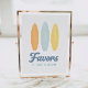 Invite friends and family to take a favor with this sign, featuring colorful watercolor surfboards.