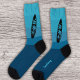 Surfboard Silhouette on Ocean Waves Blue Socks