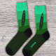 Surfboard on each side on the calves with a light green to green gradient and the last dark green on the foot part of the socks. Unusual, colorful and representing your hobby and lifestyle. Available in different variations.