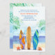 A surfer's dream, hand-drawn, watercolor invitation showing three surfboards on a sandy beach with palm ferns, a star fish and conch shell.<a href='http://www.freepik.com/free-vector/surf-landscape-on-the-beach-background-in-watercolor-effect_882068.htm'>Designed by Freepik</a>. <br/><br/>The card is easy to customize with your wording, font, font color, paper shape options and choice of six paper types.<br/><br/>Not exactly what you're looking for? All our products can be custom designed to meet your needs at no extra charge.<br/><br/>Simply contact us at heartfelthelper@gmail.com<br/><br/>Coordinating products available: Just ask us!
