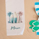 Watercolored retro surf boards and palm trees in gree, yellow and orange. Cream colored background. Personalize and add your name.