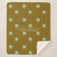 Beach-themed surfer's fleece blanket to personalize. A little pattern of three, illustrated surfboards covers this golden brown blanket. Customize text in the center with a family name, or any text. Use to keep warm on windy days on the coast.