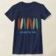 My overall review is that the T-shirt is nice, it fits true to size however the font is significantly smaller than advertised and you can't read it. The printing is unreadable and there is a strain to read it. It does not look like the advertised product. Maybe the shirt color is darker or a larger more visible font should have been used. Photos with and without flash and font is barely legible.