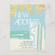 This retro and chic change of address/moving announcement postcard features a pair of surfboards on a tropical white sand beach with palm trees. Personalize for your needs. You can find more matching products at my store.