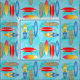 A surf pattern of vintage style surfboards.
