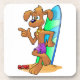 SURFER DOG ENJOYING SUMMERTIME ON HIS NEW SURFBOARD