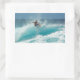 Rectangular photo sticker of a professional surfer surfing his board on a big wave at Banzai Pipeline, North Shore, Oahu, Hawaii.