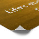 Customisable poster of a surfer standing on the beach with his surfboard in his and at sunrise with the quote "Life is about catching the right wave and riding it as long as you can" written below.