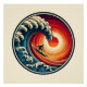 Capture the thrill of the ocean with this vibrant circular artwork featuring a bold wave under a fiery sunset.