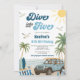 Plain white envelopes are included with paper invitations and will come to fit the invitation size you select. If you don’t need the envelopes, you may choose to not receive them by selecting the dropdown below "Envelopes" and choosing "None." If you’d like to have a design on your envelopes, you can browse all of these available envelopes to find the design that complements your Surfing 5th Birthday Invitation Dive Into Five.