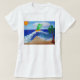 (The painting is of a green angel on an orange surfboard catching a wave. A sun glows in the background and palm tree gently sways on the beach. The wave is getting ready to crash on the beach smoothing the sandy surface. The green angel pays tribute to the Archangel Raphael whose color is green and is known for bringing healing. The sun helps sustain life and through it plants such as palm trees strengthen and grow. The power of sun's energy is symbolized in the matched orange- yellow surfboard. The beach is clean and smooth. This painting was inspired by the "Wipe Out Cancer Angel". Instead of adding text of this painting, it was left open so you can your own wipe out, riding the wave, or other go with flow message to the beach, cloud, or sky.