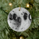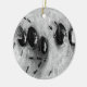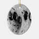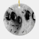 Lightweight, smooth, pure white ornament with nice sheen. Perfect size to be seen from across the room ... and to attract closer inspection! Price was great for ordering enough for the whole family! Clear, bold black design just as requested. Matches the order exactly. Just so nice!