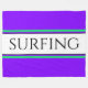 This fun classy design features modern typography inside a wide white center stripe highlighted with floating mint green pinstripes against a vivid purple background with SURFING text written across the design inside the center stripe. The colors and text can be personalized.