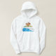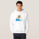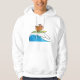 A cartoon style bulldog riding a surfboard on a wave. This design looks really effective on this Mens Hoodie