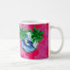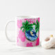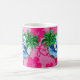 Surfing design of a surfer riding a wave, framed by tropical palm trees. Pink background of Hawaiian Honu Sea Turtles and hibiscus flowers.