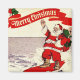 This snazzy Christmas magnet features a vintage illustration of Santa Claus on a surfboard. The perfect fun magnet for fans of Santa and all things retro!