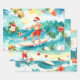Bring the beach to your Christmas gifts! This cheerful watercolor wrapping paper features Santa Claus surfing tropical waves, surrounded by palm trees, seashells, and Christmas lights. Perfect for surfers, beach lovers, and anyone celebrating a sunny Christmas by the sea.